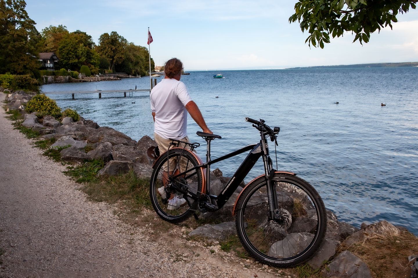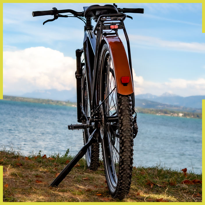 Das Ride.E SUV ist die perfekte Kombination aus einem Mountainbike (MTB) und einem Trekkingrad. Wir haben einen robusten Mountainbike-Rahmen mit einer Federgabel, breiten Reifen und mit praktischen Funktionen aus dem Trekkingbereich - wie Gepäckträger, Schutzblechen und Licht. Diese Kombination ermöglicht es, die Vorteile von Gelände- und Straßenfahrten zu vereinen. Egal, ob du dich auf rauen Pisten oder in der Stadt befindest, unser SUV bietet dir die perfekte Balance zwischen Fahrsicherheit und Komfort. Das macht es zu einem großartigen Begleiter für Reisen oder den täglichen Gebrauch. Unser Ride.E SUV fühlt sich auf jedem Terrain zuhause. Ob du durch die Stadt cruist, auf unbefestigten Wegen unterwegs bist oder deine nächste große Reise planst, dieses vielseitige Fahrrad ist dein zuverlässiger Begleiter. Mit dem Ride.E SUV kannst du die Freiheit des Radfahrens in vollen Zügen genießen, egal wohin dich deine Abenteuer führen.